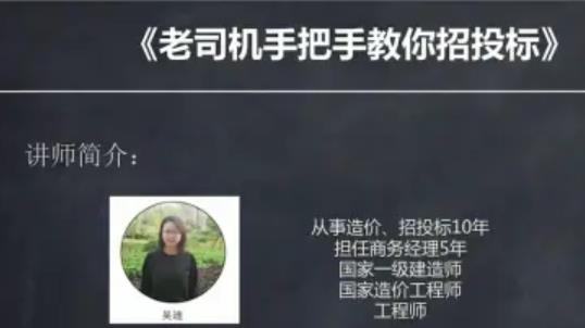 该课程全面讲解招投标,从招投标的基本概念,到招投标的种类、流程;商务标如何编制、技术标如何编制,如何查找招标信息,如何避免废标,投标报价策略,电子招投标流程,评标出现不利情况如何挽回,如何看待招投标的失信行为.…